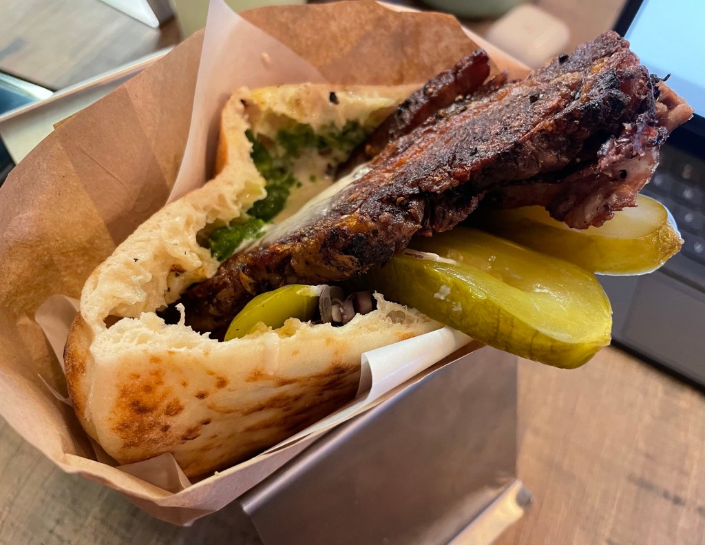 Confession time. This wasn’t my first time at Miznon. All three times before though, I played it “safe” by having the chicken liver pita (I heart liver. So to speak). This time I resisted and went boldly for the candy beef brisket. It’s got a bite to it (in a good way) with the right balance of crunch and fluff (from the pita mainly). And strangely, unlike with the chicken liver which could at times be just a tad too much (read: liver fattiness overdose), the beef brisket left me yearning for more! Happy Passover!