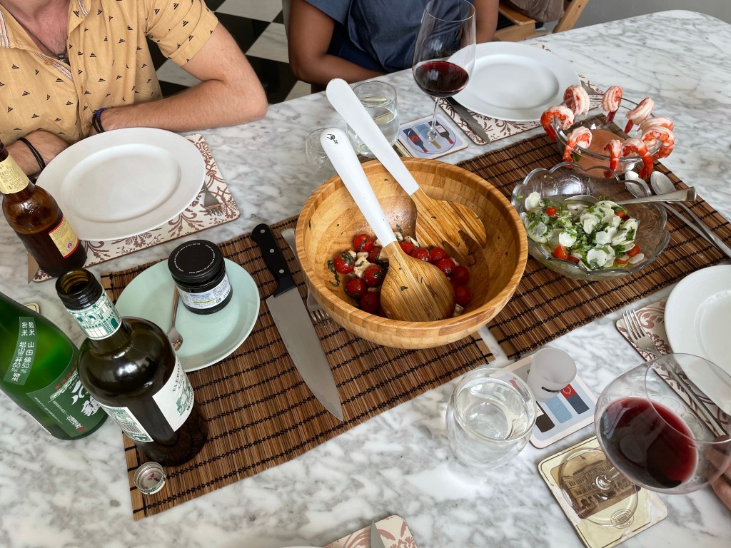 Sometimes words are unnecessary. What I didn’t expect was that hosting, and preparing for and cooking a meal would be so much fun. There’s immense satisfaction in putting together a dish, and then several other dishes. And to see all of that culminate in a set meal. Hoping we get to do this again soon.