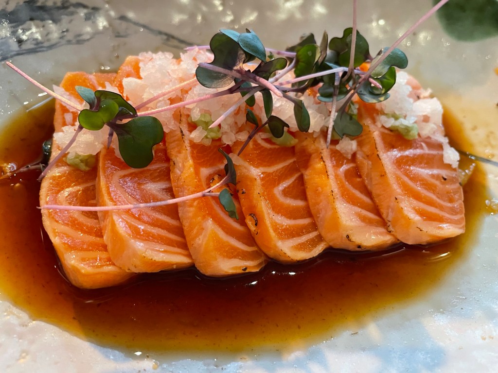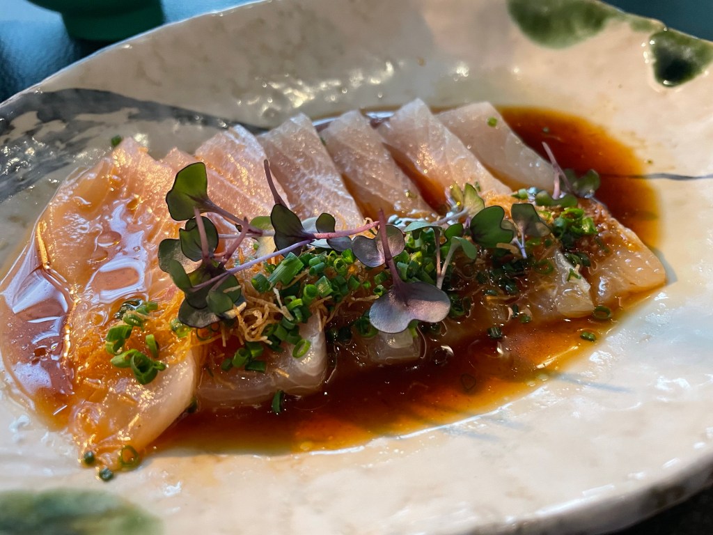 Hiramasa kataifi (yellow tail amberjack with truffle oil, ponzu, chives, and shiso). My favourite pick Salmon tataki. Slightly overshadowed by the hiramasaThe New York subway. I’ve been on the subway and have to say I prefer the dishThe miso soup had just the right level of oomph. This Japanese sparkling cocktail was yuzu zesty and deliciously syrupy at the same time. Perfect complements to the meal
