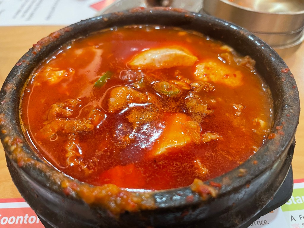 Just as in the 60s we had the British Invasion, it really does feel like with the popularity of Korean music, TV, fashion and food, we are in a Korean golden age. I cannot get enough of this tofu soup which is both spicy and salty and complements the smooth silken tofu like a dream.